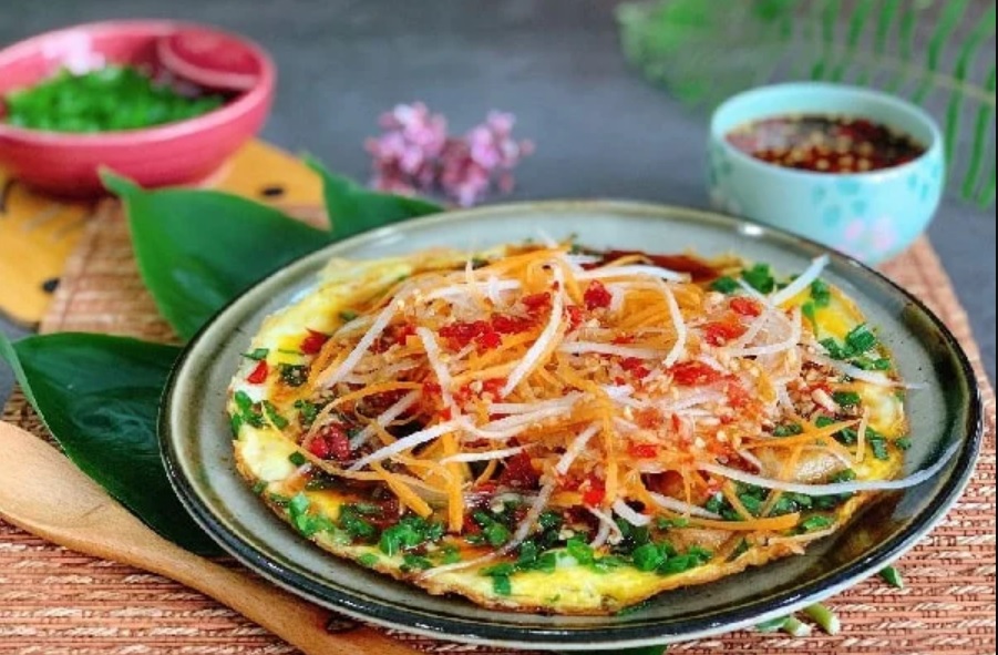 Cho phần bột chiên ra đĩa, sau đó gắp củ cải và cà rốt để lên, thêm 1 ít hành phi, đậu phộng và mỡ hành lên trên. Chan phần nước chấm lên trên, và dùng nóng sẽ cực ngon nhé mọi người. Món ăn này cũng khá đơn giản và lại cực ngon nữa. Chúc mọi người thành công nhé.